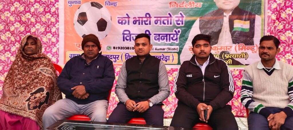 रुड़कीl झबरेड़ा विधानसभा से निर्दलीय प्रत्याशी के रूप में उतरे सुनील कुमार उर्फ मिंटू ने पत्रकार को संबोधित करते हुए कहा कि सभी राजनीतिक दलों के प्रत्याशी विधायक बनने के बाद सिर्फ अपना विकास करने में लग जाते हैं जबकि क्षेत्र में अनेक समस्याएं हैं जिनकी ओर वह कोई ध्यान नहीं देतेl उन्होंने कहा इस बार वे निर्दलीय प्रत्याशी के रूप में जनसेवा को उतरे हैंl उन्होंने कहा यदि क्षेत्र की जनता ने उन्हें मौका दिया तो वह क्षेत्र की सभी समस्याओं को प्राथमिकता से हल करेंगेl उन्होंने कहा कि विधानसभा क्षेत्र में जनता का उन्हें भरपूर स्नेह प्राप्त हो रहा है जिसके चलते वह विधानसभा चुनाव में भारी मतों से विजई होंगेl उन्होंने क्षेत्र की जनता से अपील करते हुए कहा कि 14 तारीख को जब वह मतदान करने के लिए जाएं तो चुनाव चिन्ह फुटबॉल पर बटन दबाकर निर्दलीय प्रत्याशी को विजई बनाने का काम करेंl उन्होंने बताया कि उन्होंने 2019 में लोकसभा का चुनाव वाराणसी से नरेंद्र मोदी के सामने निर्दलीय प्रत्याशी के रूप में भी लड़ा थाl