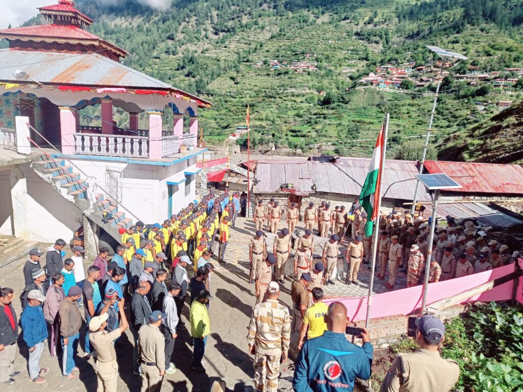 पुलिस महानिरीक्षक एसडीआरएफ, अरुण मोहन जोशी द्वारा धराली गांव में सम्मानपूर्वक राष्ट्रीय ध्वज को फहराकर मौके पुलिस, फायर, एसडीआरएफ, आईटीबीपी, पीएसी, होमगार्ड, पीआरडी आदि बचाव दलों तथा ग्रामीणों को देश की रक्षा व अखण्डता की शपथ दिलाई गयी।