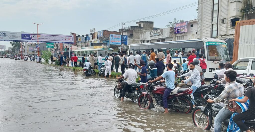 रुड़की। आज रात भर हुई भारी बारिश से नगर का जीवन पूरी तरह अस्त-व्यस्त हो गया। नगर के कई इलाकों में भारी जलभराव के साथ ही रामपुर चुंगी, सुभाष नगर, राजेंद्र नगर, कृष्णा नगर समुद्र में तब्दील हो गया, जिससे वाहनों को भी गुजरने में बड़ी कठिनाईयों का सामना करना पड़ा।