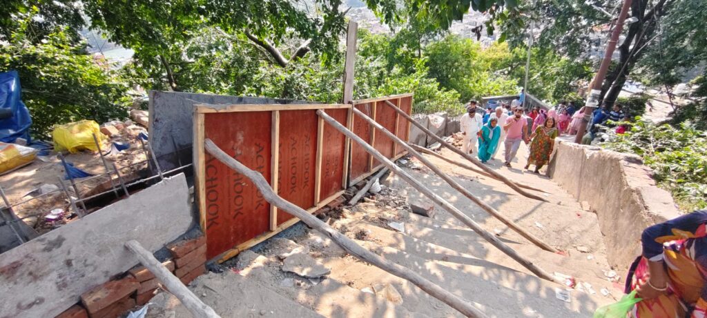 जिलाधिकारी के निर्देशों के अनुपालन में मंसा देवी क्षतिग्रस्त पैदल मार्ग को एवं पहाड़ी क्षेत्र के संरक्षण एवं पहाड़ी के कटाव को रोकने के उद्वेश्य से हिल ट्रीटमेंट निर्माण कार्य शुरू कर दिया गया है।