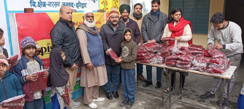 गुरुवार को नारसन ब्लॉक के ग्राम पीरपुरा स्थित राजकीय प्राथमिक विद्यालय मैं शिक्षा ग्रहण करने वाले 150 अच्छा छात्रों को एपीस इंडिया लिमिटेड के अधिकारियों ने सर्दी से बचाव के लिए गर्म जर्सी का वितरण किया। इस अवसर पर कंपनी के प्रबंधक अखिलेश प्रताप सिंह ने कहा कि कंपनी की ओर से लगातार स्कूल में शिक्षक बच्चों के लिए कुछ न कुछ वितरित करने की योजना बनाई है जिसके तहत सर्दी से बचाव के लिए बच्चों को जर्सी बांटी गई है जबकि इससे पूर्व में स्कूल में शिक्षा रेड सभी बच्चों को हेल्दी फूड का वितरण किया गया था। विद्यालय के प्रधानाध्यापक मोहम्मद इकराम ने कहा कि कंपनी की ओर से नर सेवा नारायण सेवा अभियान को चला करते हुए बच्चों को समय-समय पर सामग्री वितरित की जाती रही है। कंपनी की एच आर अंजू त्यागी ने बताया कि कंपनी की ओर से राजकीय प्राथमिक विद्यालय को गोद लेकर वहां पर शिक्षा ग्रहण करने वाले बच्चों के लिए समय-समय पर सामग्री वितरित करने की योजना को पूरा करने का प्रयास किया जा रहा है। इस अवसर पर अखिलेश प्रताप सिंह, कपिल शर्मा, अंजू त्यागी, जयपाल सिंह, निश्चल भारद्वाज, जितेंद्र कुमार, अमनदीप, नीरज आदि मौजूद रहे।