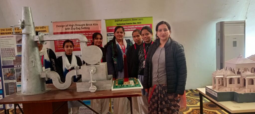 और केंद्रीय भवन अनुसंधान संस्थान रुड़की के साइंटिस्ट्स ने इन सभी के बारे में छात्राओं को जानकारी दी और नई प्रौद्योगिकी ज़िग ज़ैग हाई ड्राफ्ट जली हुई मिट्टी ईंट भट्ठा के बारे में समझाया कि एक आधुनिक,पर्यावरण-अनुकूल और ईंधन-कुशल तकनीक है, जिसमें ईंटें टेढ़े-मेढ़े (Zig-Zag) मार्ग से हवा गुजरने के कारण समान रूप से पकती हैं।