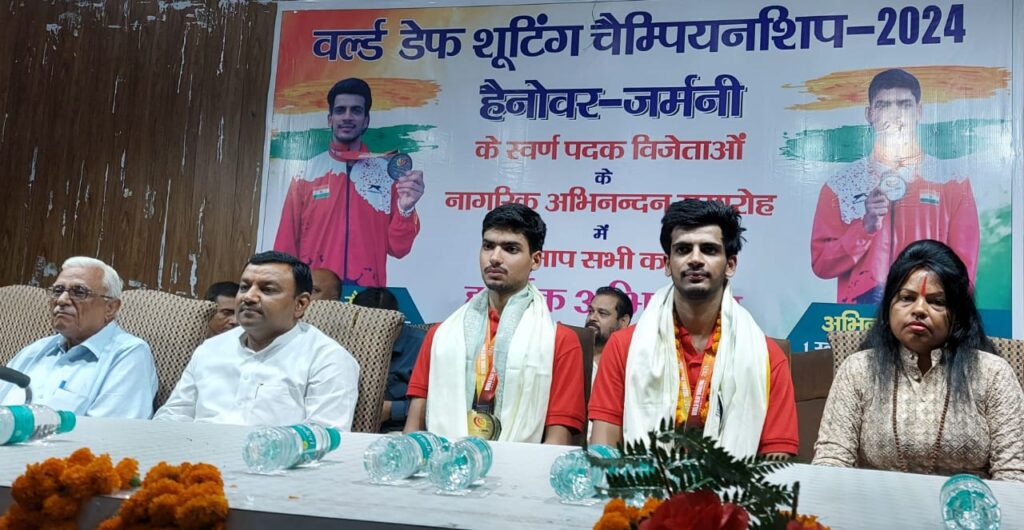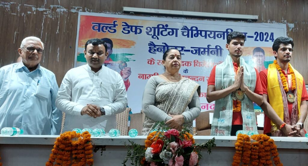 रुड़की। जर्मनी के हैनोवर में हुई वर्ल्ड डेफ शूटिंग चैंपियनशिप में स्वर्ण एवं रजत पदक जीत कर लौटे रुड़की क्षेत्र के दो युवाओं शौर्य सैनी तथा अभिनव देशवाल का आज नगर निगम सभागार में सैनी समाज की ओर से नागरिक अभिनंदन किया गया, जिसमें राज्यसभा सदस्य डा. कल्पना सैनी ने मुख्य अतिथि के रूप में बोलते हुए कहा कि कोई भी खिलाड़ी जब विदेश से सम्मान लेकर लौटता है तो वह किसी जाति या धर्म का नहीं होता, बल्कि पूरे देश का प्रतिनिधित्व करता है। इन युवाओं ने जहां सैनी समाज का मान बढ़ाया है वहीं हिंदू, मुस्लिम, सिख व इसाई सभी लोग उनकी इस उपलब्धि पर गर्व कर रहे हैं।